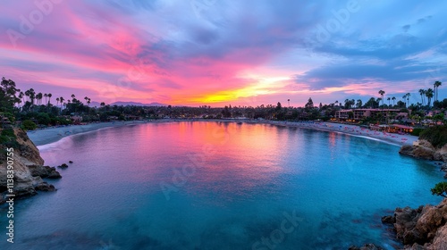 Coastal Sunset Paradise Vibrant Sky over Ocean Bay