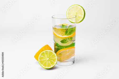 Cocktail isolated on white background. Lemon, lime and mint cocktail.