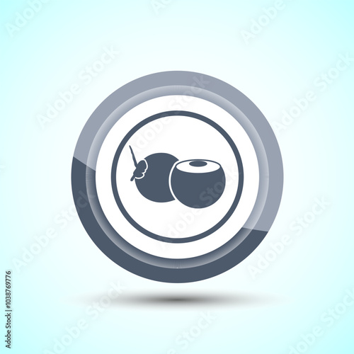 Coconut fruit icon design illustration, Organic fruit icon sign for apps and websites, Gray Color Button Design