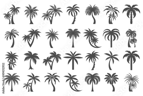 Coconut palm tree icon set logo design , simple style palm tree silhouette . vector illustration