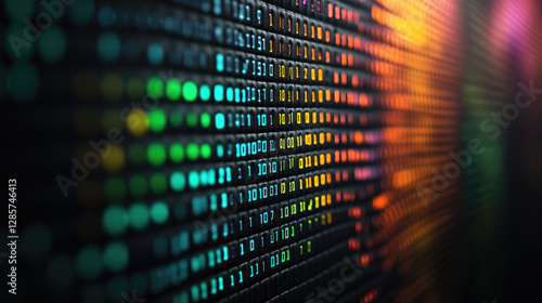 Coding glowing firewall display on a virtual screen neon matrix background cyberpunk aesthetic viewpoint digital art concept