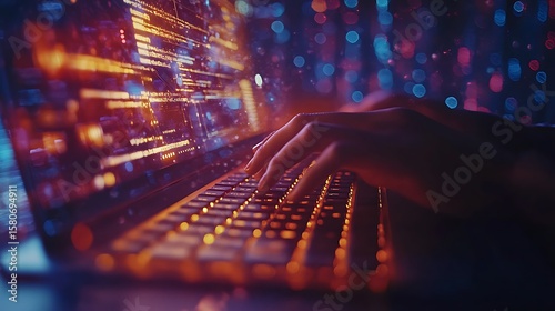 Coding on Laptop Cyber Security with Data, Technology, and Digital.