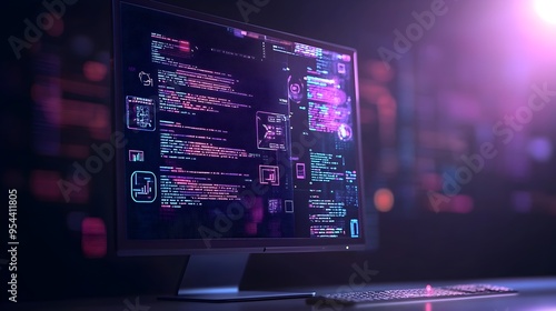 Coding Symbols on Computer Monitor Representing Tech Business in Paper Cut Style