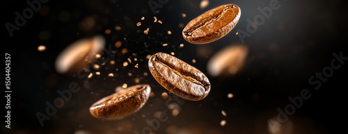 Coffee Beans Flying in the Air With a Light Brown Background Creating a Captivating Moment