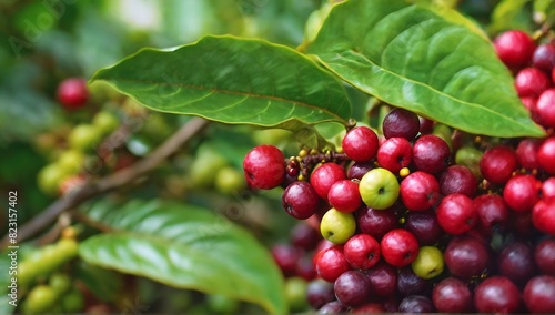 Coffee berries on branch, ai generative
