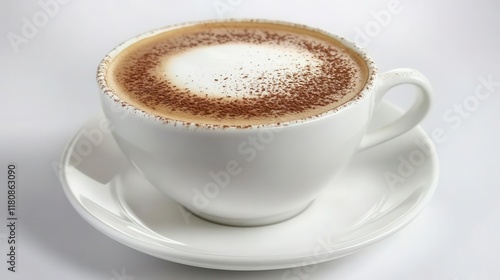 Coffee cup clip art showing a cup of cappuccino with choco granule at the top, isolated on a white background