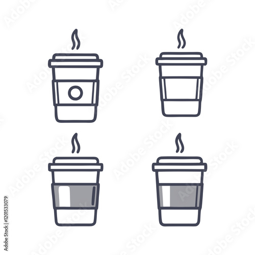Coffee Cup Icon Bundle Isolated on Transparent Background.