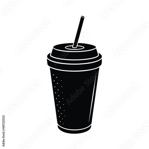 Coffee day vector art of a black silhouette of a disposable cup with a straw isolated