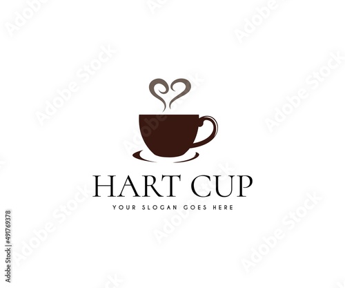 Coffee logo design vector template. Coffee and tea logo design with heart shape. Premium coffee shop logo. Cafe mug icon