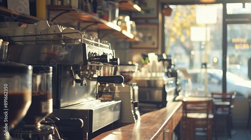 Coffee shop background. Cup of coffee latte on wood bar. Takeaway coffee. High quality AI generated image