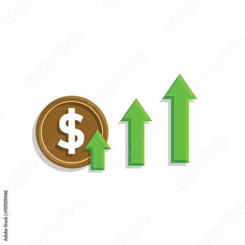 coin icon. money strengthens, rises. money management vector, business and finance icon, showing continuous movement. flat color design style