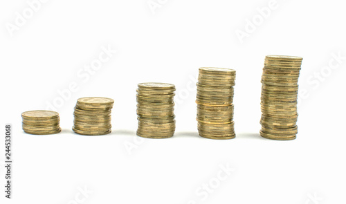 coins on an isolated background. Saving money, accumulating for the realization of a dream.
