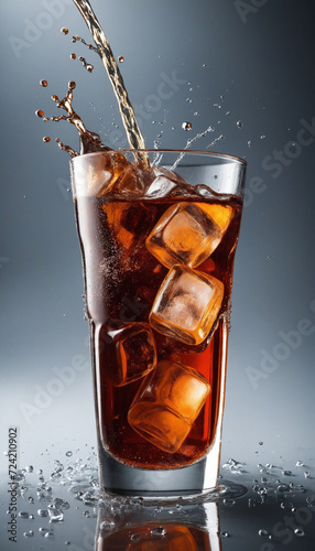 Cola Soda Glass with Ice Cubes Splash Texture. Ice Cubes With Cola Soda
