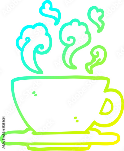 cold gradient line drawing of a cartoon cup of hot coffee