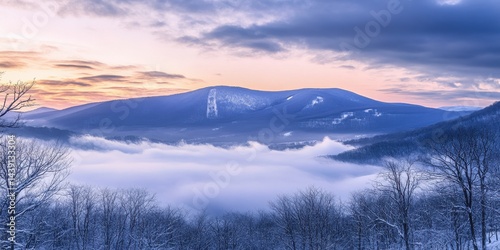 Cold Mountains. Snowy Landscape of Winter Mountains with Cloudy Sky