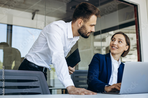 Colleagues working in office on the computer