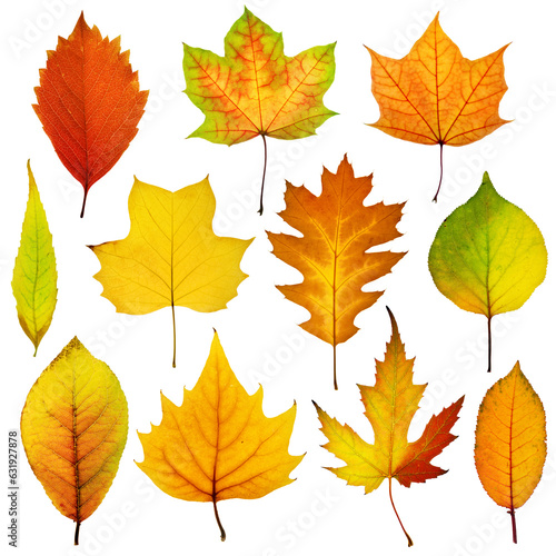 Collection beautiful colorful autumn leaves isolated on white background. Autumn background.