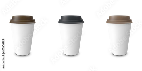 Collection, group, set, take-out coffee with cup holder. Isolated on a white background.