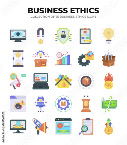 Collection of 25 Business Ethics Icons. A Guide to Ethical Business Practices