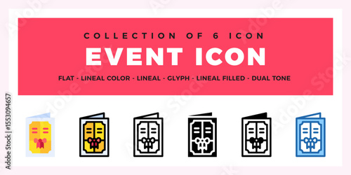 Collection of 6 Event Icons. Flat. Lineal. Glyph Styles