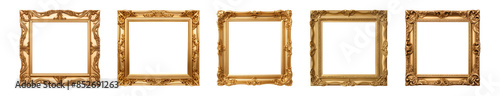 Collection of antique gold picture square frames isolated on a transparent background, PNG