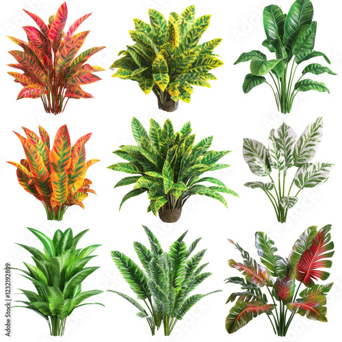 Collection Of Artificial Plants With Variegated Leaves And Vibrant Colors