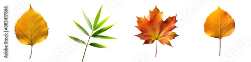 Collection Of Autumn And Green Leaves Isolated On Transparent Background