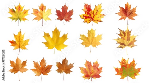 Collection of autumn leaves isolated on transparent background