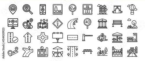 Collection of Black Line Icons City Infrastructure Navigation Travel