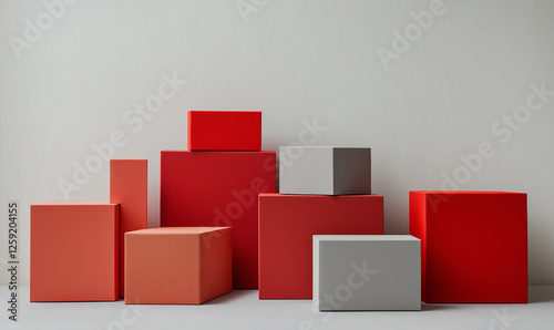 Collection of boxes arranged in front of a white wall, exuding minimalist style and structure