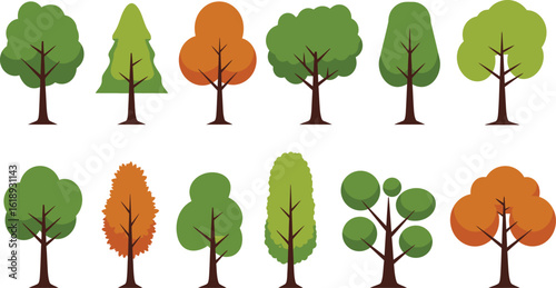 Collection of Cartoon Trees in Various Shapes on transparent background