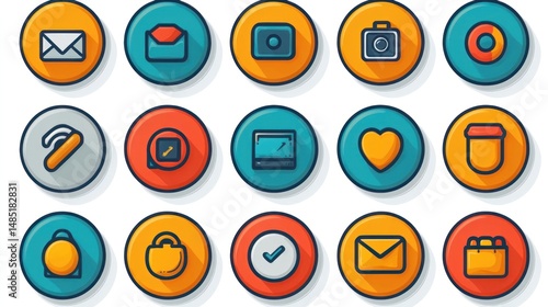 Collection of Colorful App Icons: A Delightful Set of Flat Design Elements for Mobile and Web Applications