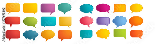 Collection of colorful speech bubbles in various shapes. isolated on transparent background