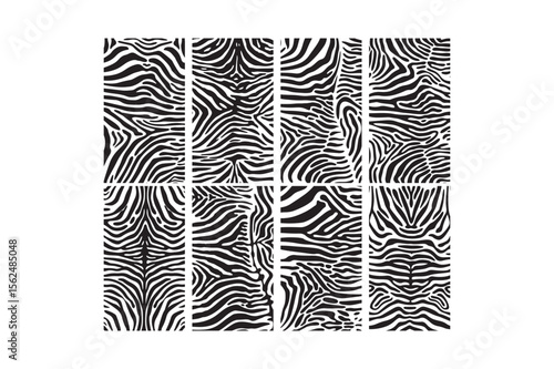 Collection of diverse black and white zebra stripe patterns