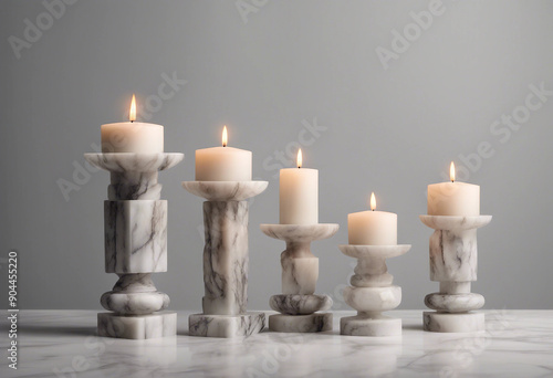 Collection of expensive marble pedestal pillar candle stands set isolated on transparent background