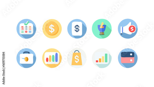 Collection of finance and business icons isolated on white background perfect for presentations, reports, and websites related to money and investment