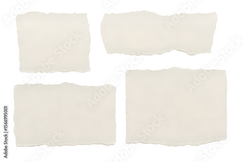 Collection of Four Blank Ripped Torn Paper Pieces Isolated on White Background with Rough Edges