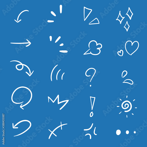 Collection of hand drawn cartoon style element, decorative brush stroke lines, directional arrows, animation expressions effects