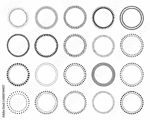Collection of hand drawn circular decorative borders and frames