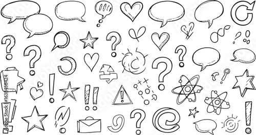 Collection of hand drawn doodle elements and speech bubbles