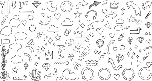 Collection of hand drawn doodle elements and symbols isolated on transparent background