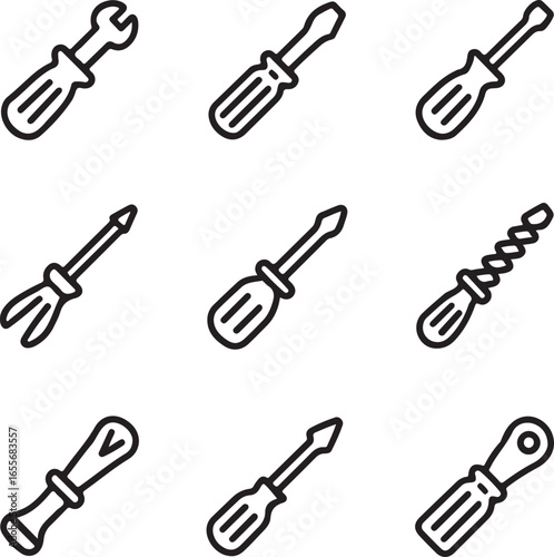 Collection of hand drawn tools including wrenches and various screwdrivers for diy and repair projects silhouette