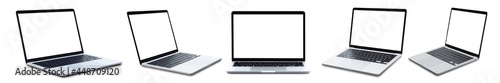 Collection of Laptop computer or notebook with blank screen isolated on white background