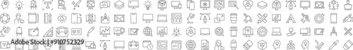 Collection of Line Icons of programming, coding, web design, engineering. Suitable for books, stores, shops. Editable stroke in minimalistic outline style. Symbol for design