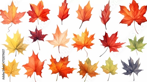 Collection of Maple leaves in watercolor style isolated. Aquarelle leaves for background. generative ai