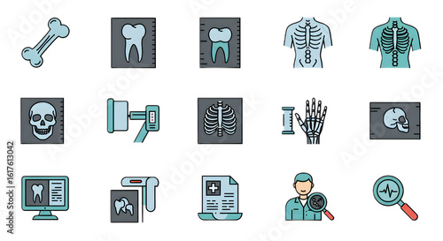 Collection of Medical and Dental Icons in Blue and Gray Style for Healthcare Design