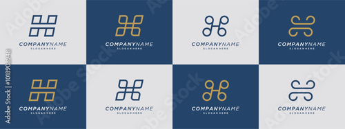 Collection of minimalist outline letter H logo design graphic ideas. Unique vector illustration based icon template.