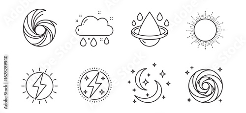 Collection of minimalist weather symbols for nature and climate forecasting purposes