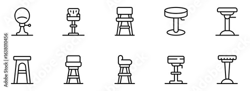 Collection of Modern Line Art Chair and Stool Icons: Simple, Clean, and Versatile Vector Graphics for Website Design, App Development, and Branding Projects.