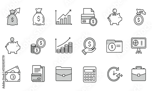 Collection of modern line icons depicting e-commerce, online shopping, payments, and delivery processes, suitable for websites and applications.